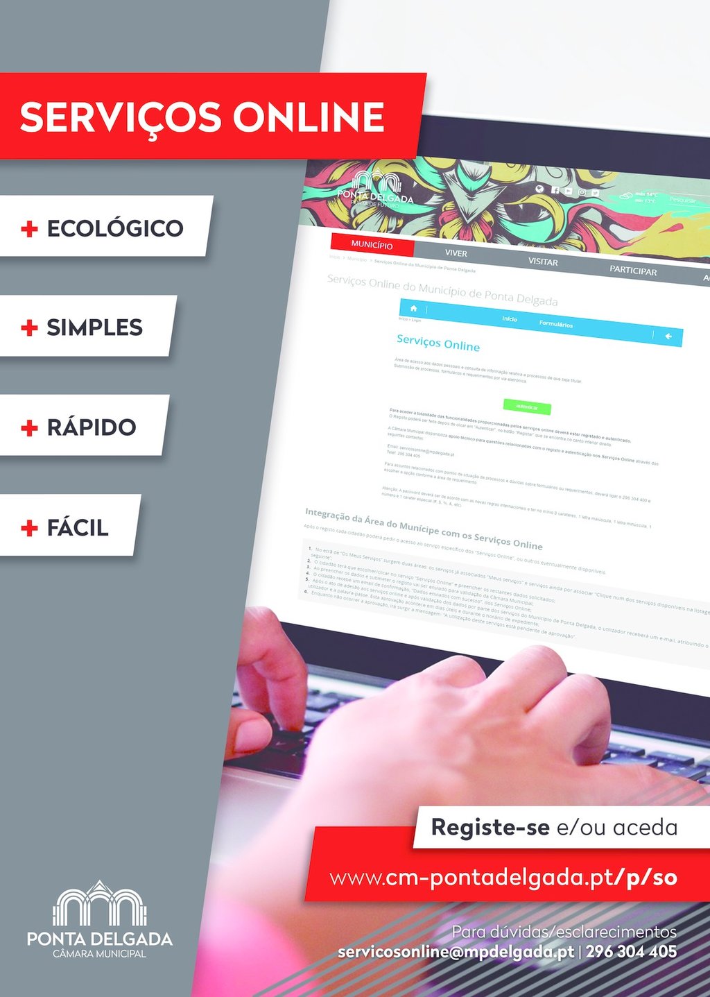 Acrescenta-se ainda que existe um número de telefone 296 304 405 de Apoio aos Serviços Online, e email servicosonline@mpdelgada.pt.